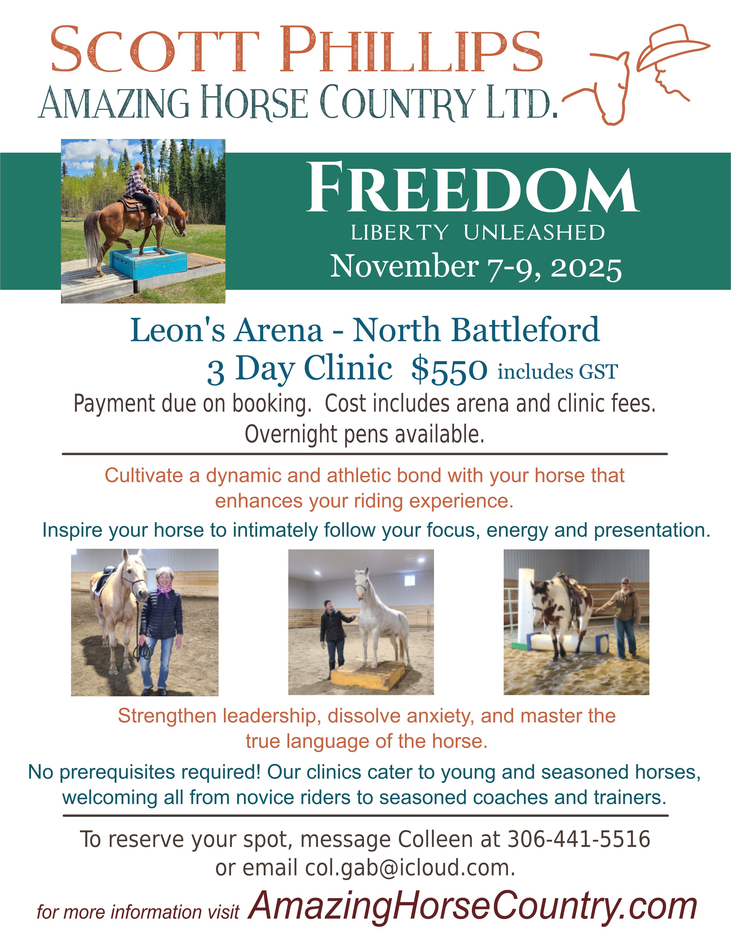 The liberty clinic focuses on these elements. We'll work on strengthening your leader-follower agreement with your horse, delve into the horse's mind and anatomy and become experts in the horse's language.