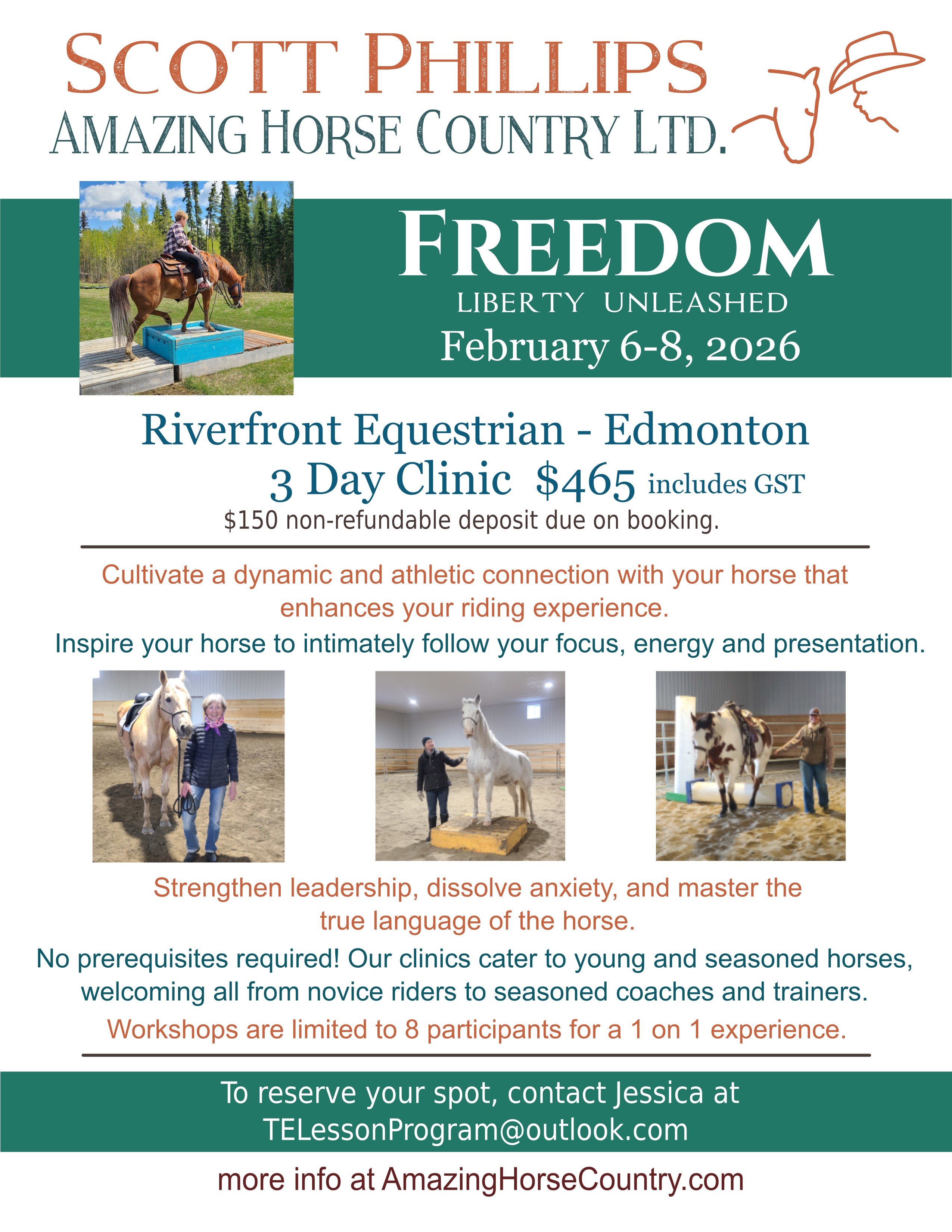 The liberty clinic focuses on these elements. We'll work on strengthening your leader-follower agreement with your horse, delve into the horse's mind and anatomy and become experts in the horse's language.