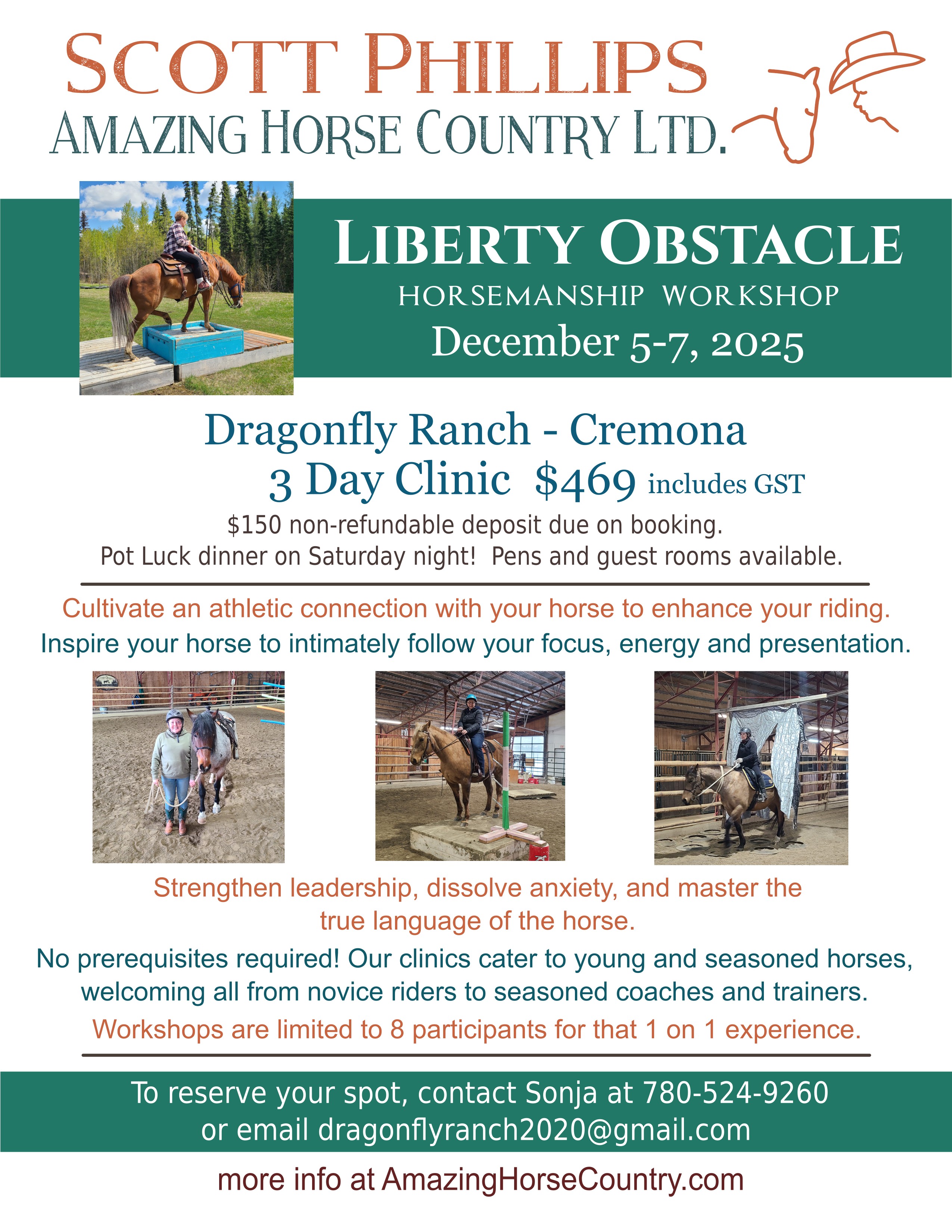 We'll work on strengthening your leader-follower agreement with your horse, delve into the horse's mind and anatomy and become experts in the horse's language.